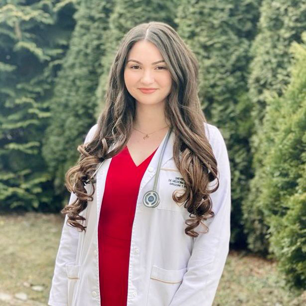 Medic rezident cardiologie, anul III. Își desfășoară activitatea clinică în cadrul Institutului de Boli Cardiovasculare „Prof. George I.M. Georgescu” Iași, fiind implicată în îngrijirea pacienților cu patologie cardiovasculară variată.